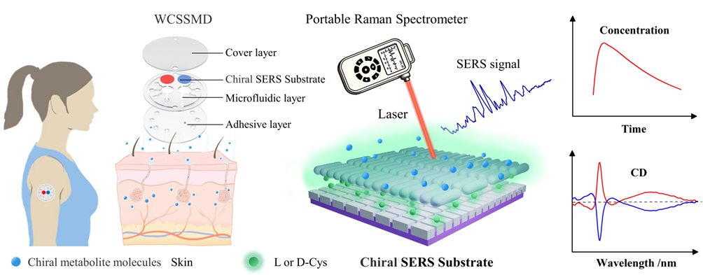 图1.?可穿戴手性SERS微流控传感技术实现人体汗液中手性代谢分子的实时监测